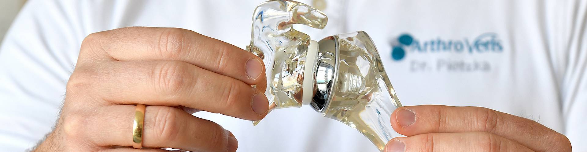 Je nach Art der Verletzung kommen unterschiedliche Prothesenmodelle in Frage. Liegen z.B. Knorpelschäden an der Gelenkfläche des Oberarmekopfes vor, rät der Orthopäde häufig zu einer sog. anatomischen Prothese. Im Falle einer deutlichen zusätzlichen Schädigung der Sehnen ist die Implantation einer sogenannten inversen Schulterprothese notwendig. Hier ist eine genaue individuelle Untersuchung und Beratung notwendig. Die Implantation eines künstlichen Schultergelenks wird in unserer Praxis durch Dr. Pietzka durchgeführt.